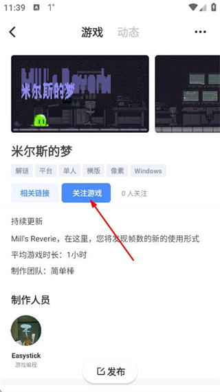 4、在游戏详情页面点击关注游戏按钮,完成对该游戏的关注操作。