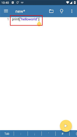 2、在代码编辑页面点击右下角的播放按钮,运行当前输入的代码。