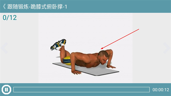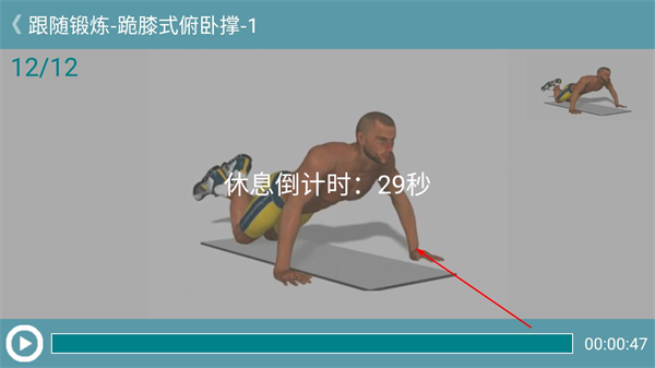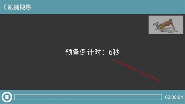 1、进入跟我练胸肌app的跟随锻炼页面,等待预备倒计时结束,自动进入动作练习环节。