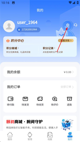 1、在颐初首页,点击底部的我的选项,进入个人中心页面。