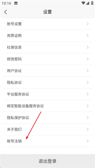 3、在设置页面,点击账号注销选项,进入注销账号页面。