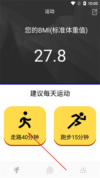 1、在迈动前进app的运动页面,选择建议的运动项目。
