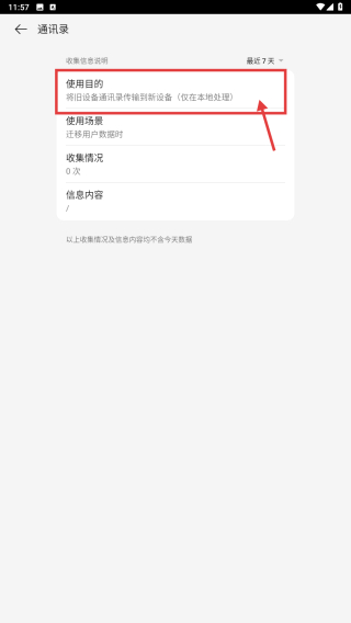 4、在通讯录信息详情页面,即可查看通讯录的使用目的等信息。