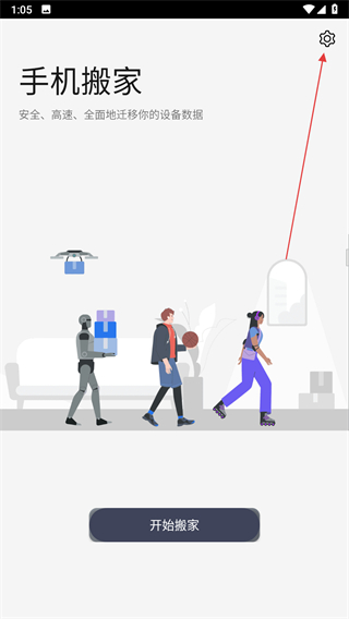 1、打开手机搬家类应用,点击右上角设置按钮,进入设置页面。