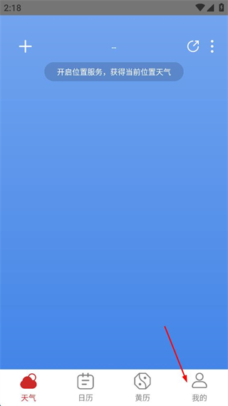 1、打开天气应用,点击界面底部的我的选项,进入对应的个人相关页面。