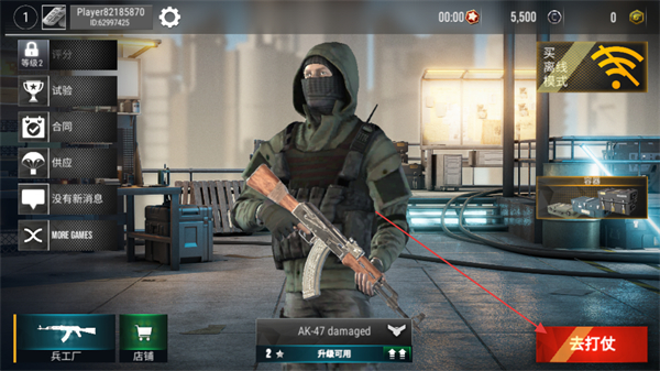 1、在主界面选择武器如AK-47,点击去打仗进入对战场景。