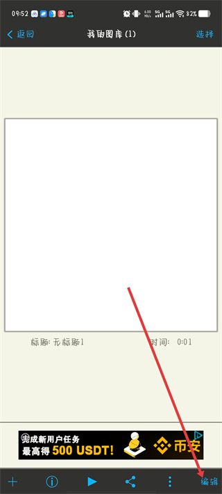 1、进入我的图库页面,点击右下角编辑选项,进入绘画界面。