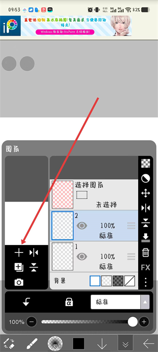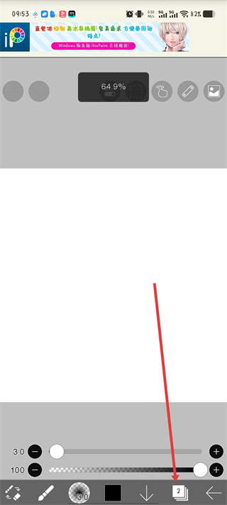 2、在绘画界面底部,点击图层图标,打开图层管理面板。