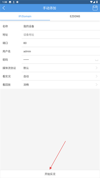4、输入设备地址后,点击开始实况的按钮即可成功。