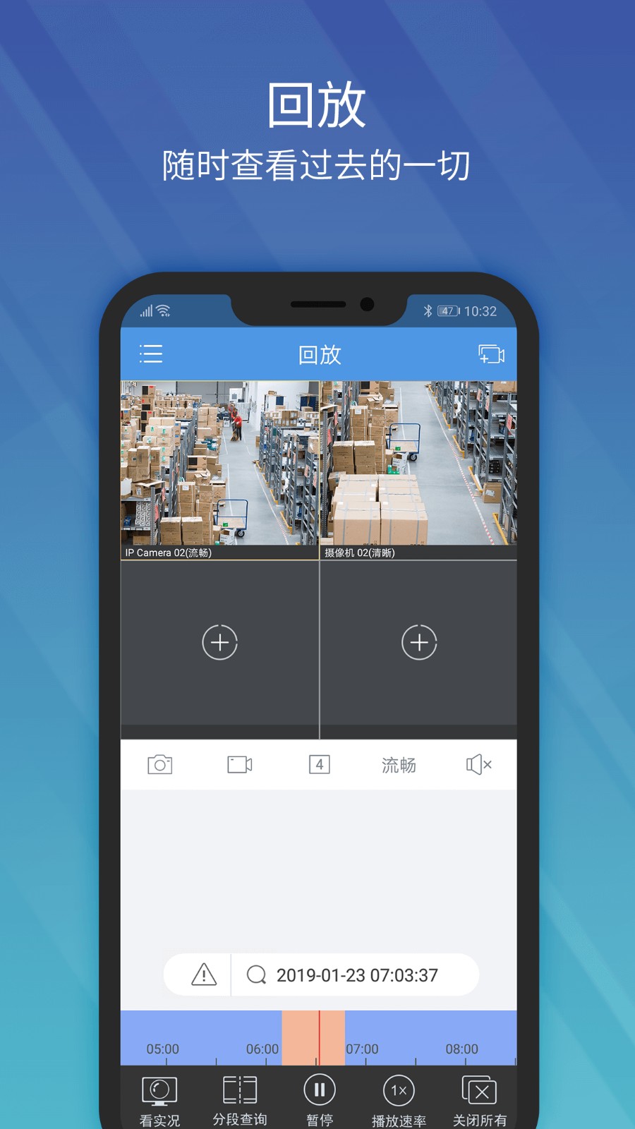 易用:扫码快速添加设备、实况画面可拖动、手势操作云台、移动数据/Wi-Fi流量实时统计