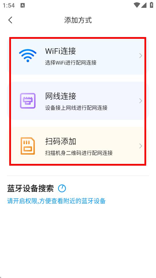 3、在弹出的添加方式页面,有WiFi连接、网线连接、扫码添加三种方式,选择适合自己设备的添加方式,比如点击WiFi连接。