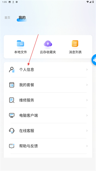 2、进入我的页面内,点击个人信息的功能按钮。