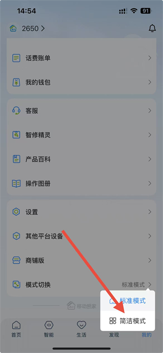2、在我的页面,找到模式切换选项并点击,弹出模式选择的菜单。