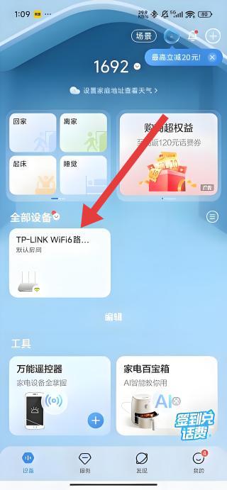 1、打开应用,在全部设备区域点击TP-LINK-WiFi6路由器,进入该设备的详情页面,准备进行WiFi设置操作。