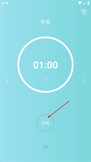 4、确认时间设置完成后,点击页面下方的开始按钮,启动休息计时的倒计时。