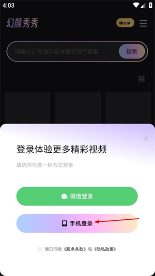 4、勾选我已同意服务条款和隐私政策的选项,点击登录按钮完成账号登录操作。