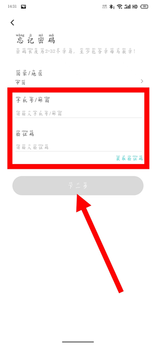 2、在密码登录页面,点击忘记密码,进入忘记密码页面。