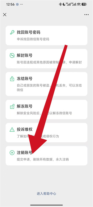 5、在微信安全中心页面,选择注销账号,进入申请注销微信账号页面。