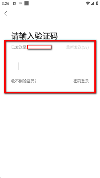 3、在登录注册界面,输入手机号,勾选协议后,点击发送验证码。