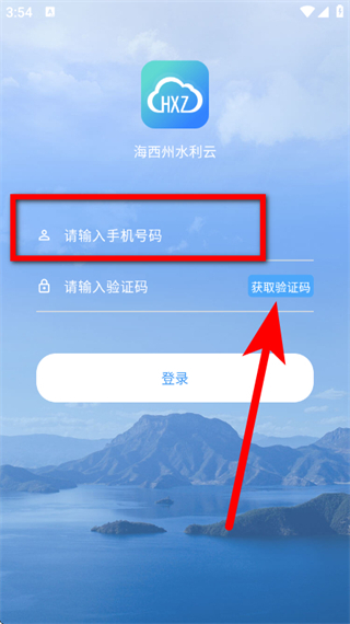 2、在登录界面,输入手机号码,点击获取验证码。