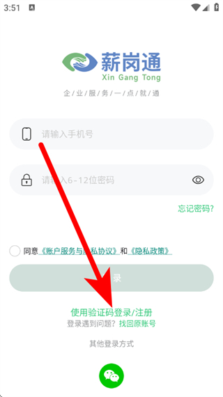 1、打开薪岗通,在提示框点击已阅读并同意,进入登录界面。