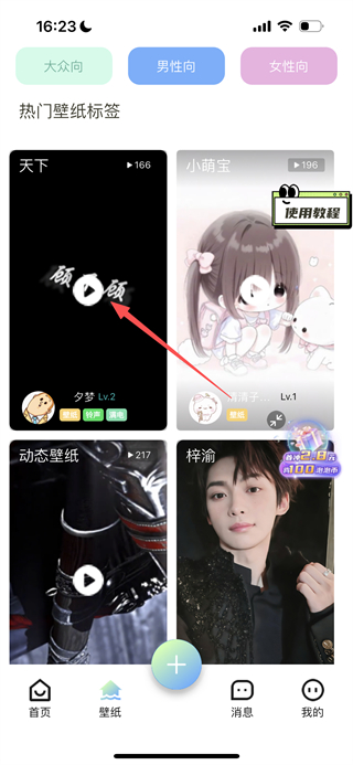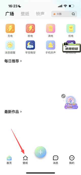 1、在空空鱼首页,点击底部的壁纸选项,进入壁纸页面。