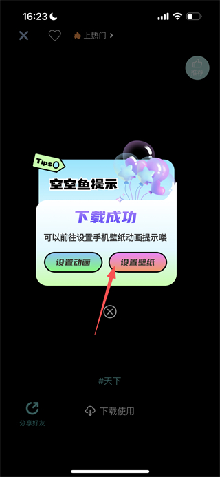 4、下载成功后,在提示弹窗中点击设置壁纸,即可设置成动态壁纸。