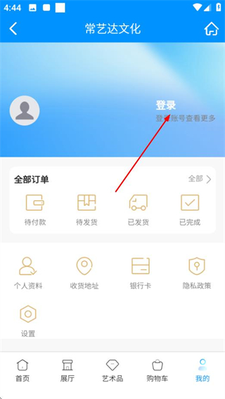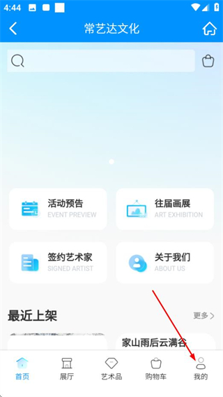 1、在常艺达文化的首页,点击底部的我的选项,进入个人中心页面。