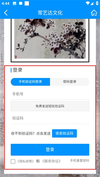 3、在登录页面,填写信息并勾选协议后,点击登录完成账号登录。
