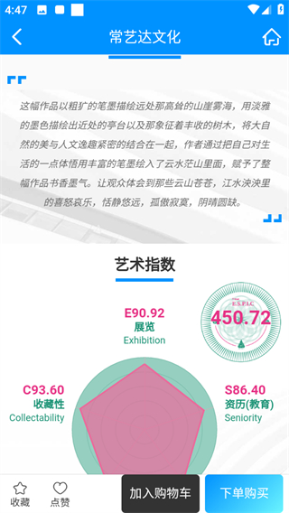 简化收藏、加购与购买流程,操作步骤直观易懂,用户找到心仪艺术品后可快速完成收藏标记、加入购物清单或直接购买,无需复杂操作,入手藏品更省心高效。