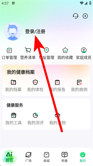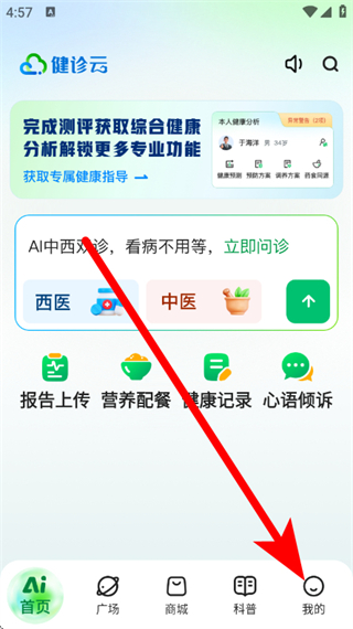 1、打开健诊云,点击底部的我的,进入个人页面。