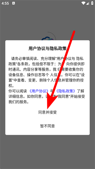 1、打开一易健康,在弹出提示框,点击同意并接受,进入登录选择界面。