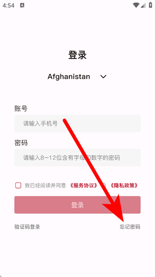3、在忘记密码页面,输入手机号,点击获取验证码。