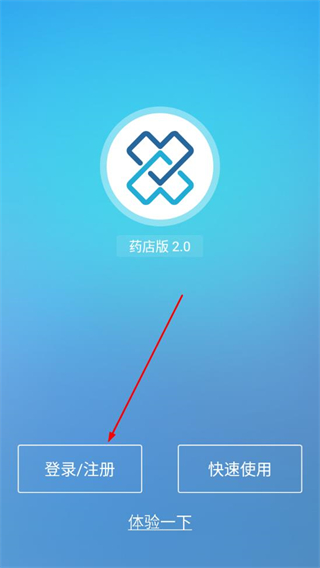 1、打开蓝信康药店版2.0,点击登录/注册。