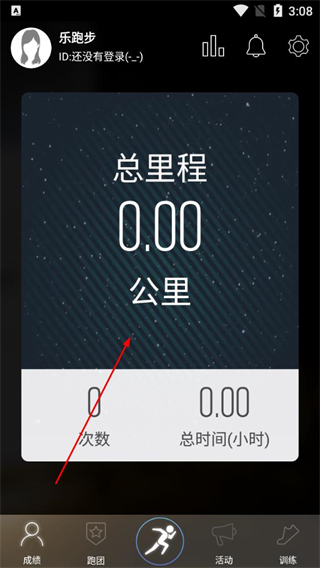 2、进入成绩页面,查看总里程等基础跑步数据。