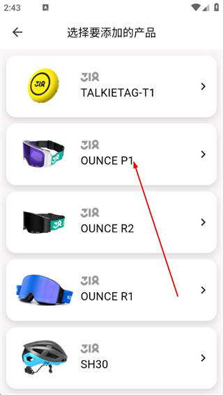 2、在选择要添加的产品列表中,找到需要绑定的设备型号并点击。