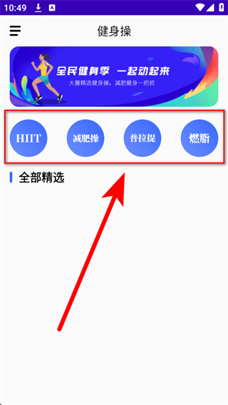 2、在主页的分类标签区域,选择目标分类,进入对应分类的健身操列表页面。