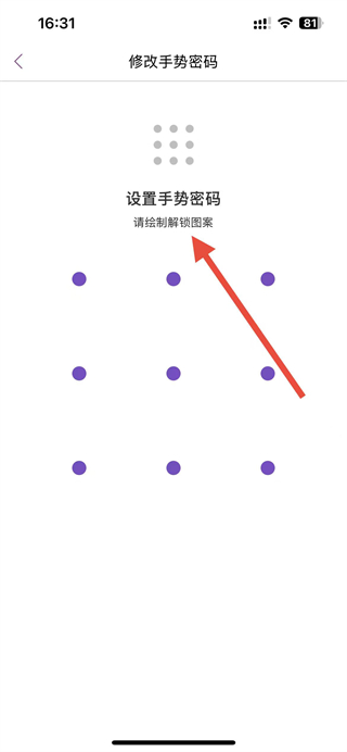 5、在手势密码页面,按照提示绘制手势解锁图案,即可设置成功。