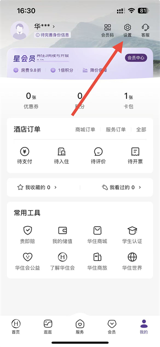 2、在会员界面,点击华住会员区域进入我的账户界面。