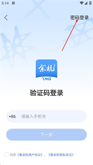 2、在验证码登录页面,点击右上角密码登录,切换至密码登录界面。