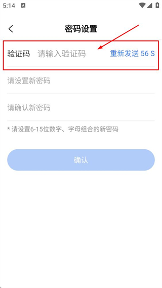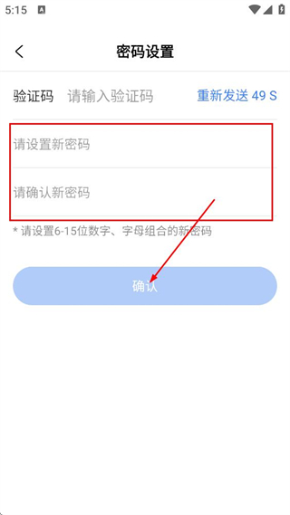 5、在该页面填写符合要求的新密码和确认新密码后,点击确认完成密码设置。
