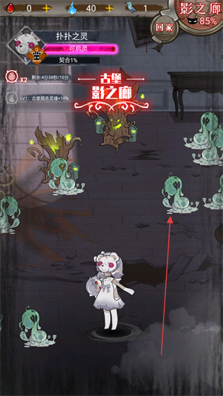 1、进入古堡影之廊关卡,操控角色在场景中移动,准备与怪物互动。
