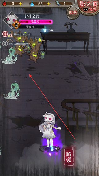 2、靠近场景中的树状怪物,触发互动获取资源,推进关卡进度。