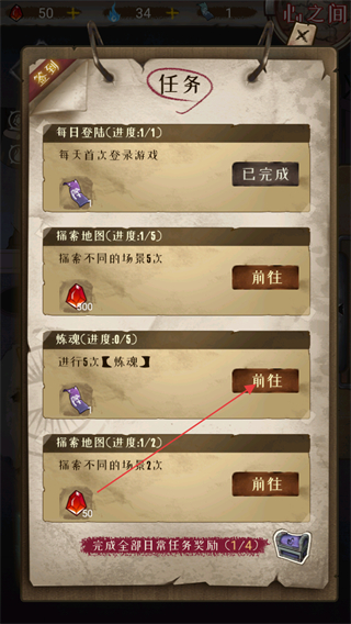 1、在任务界面,点击炼魂任务的前往,进入对应玩法界面。