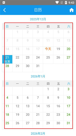 4、若需修改日期可点击出发日期栏,在日历界面选择对应日期后完成设置。