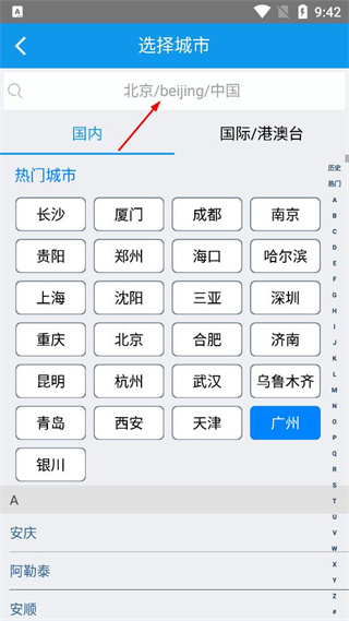 1、进入机票页面后点击出发地输入框,进入选择城市的界面。