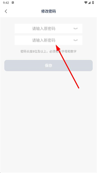 4、在修改密码页面输入原密码和新密码,点击保存按钮,即可完成密码修改操作。