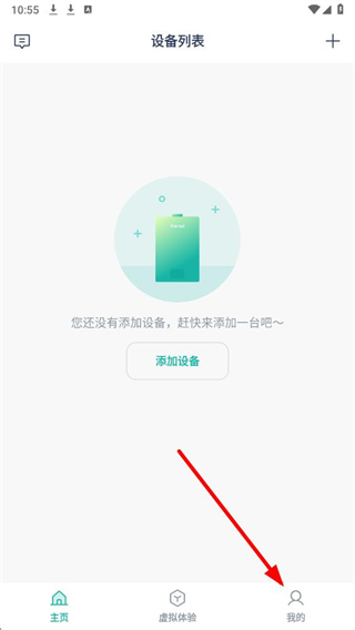 1、在林内智家app的设备列表页面,点击底部的我的选项,进入个人界面。