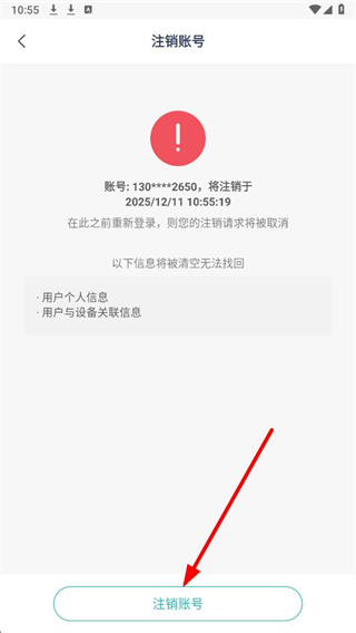 4、在注销账号页面,确认账号信息后,点击底部的注销账号按钮,即可提交账号注销请求。