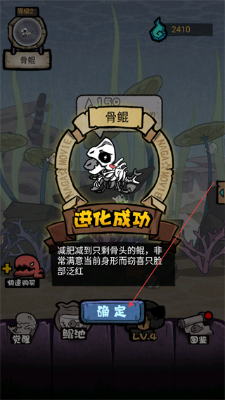 1、鲲进化为骨鲲,查看进化描述后点击确定,完成进化流程。